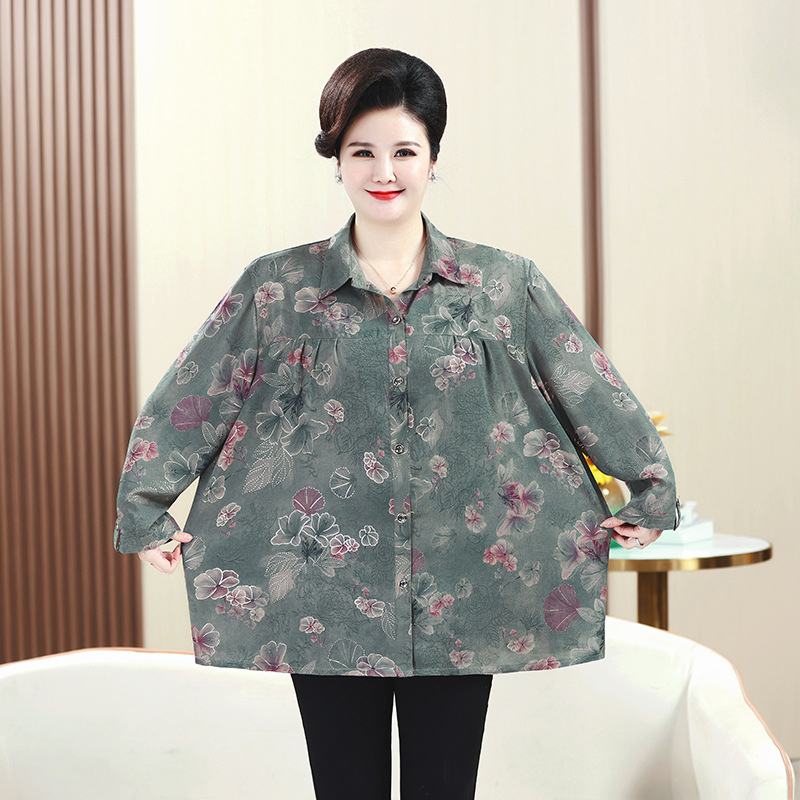 Kaus ibu gemuk 200kg, pakaian wanita ukuran besar usia sedang dan orang tua musim semi dan musim gugur kemeja nenek gemuk