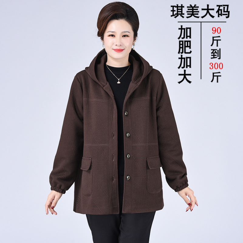 344 mantel gemuk kasual paruh baya ibu Musim Semi dan Musim Gugur jaket istri setelan topi baru wanita 12XL