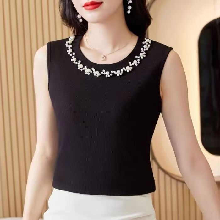 Rompi Dalaman Tanpa Lengan Pakaian Wanita Ibu Setengah Baya Ukuran Besar Pakaian Wanita Gemuk Pakaian Luar Baju Atasan Tali Kuku Manik-Manik