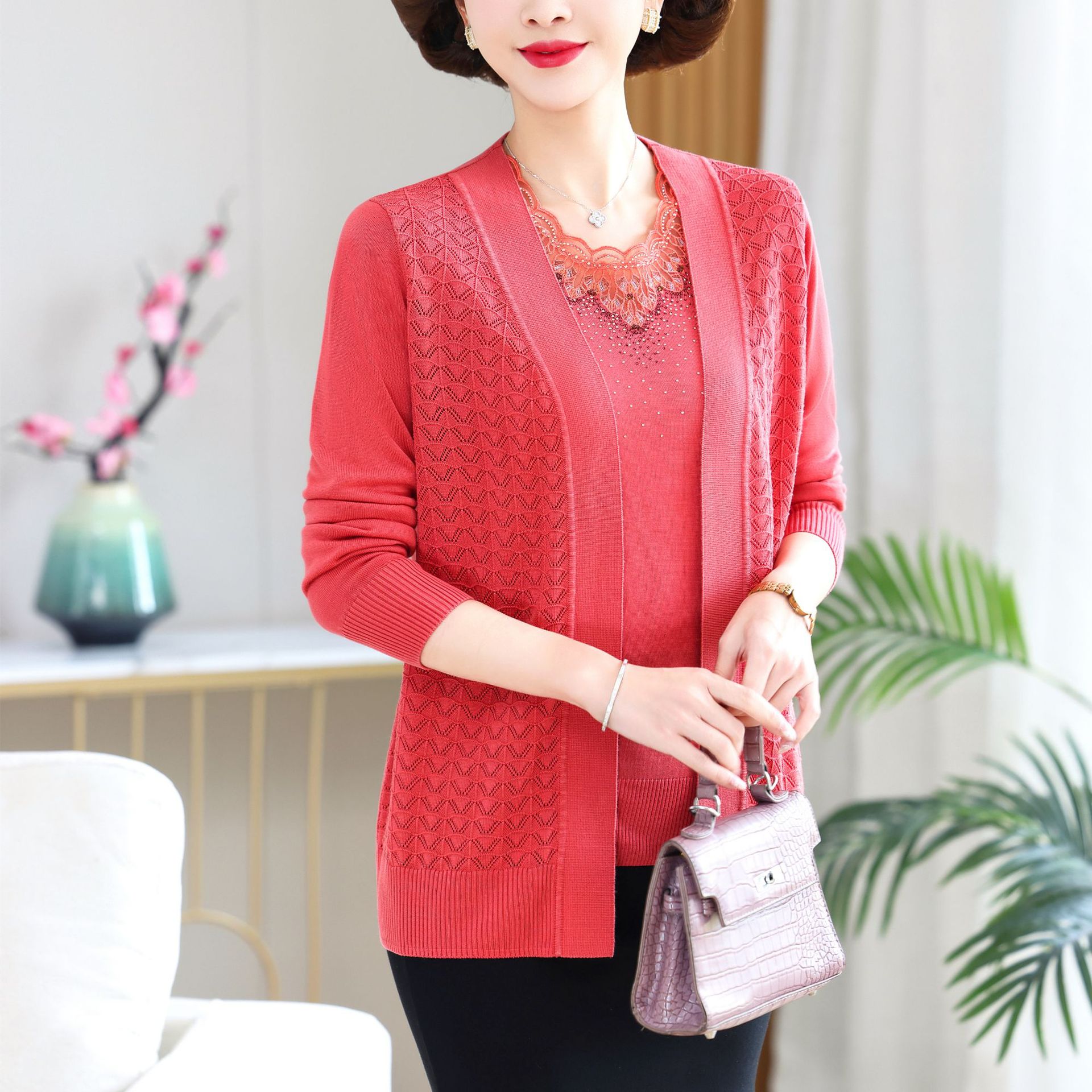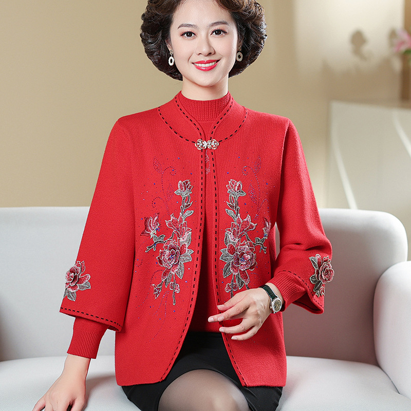 Ibu sweater mantel musim gugur wanita paruh baya dan lansia musim semi dan musim gugur kardigan rajutan atasan senang gaun pernikahan ibu mertua