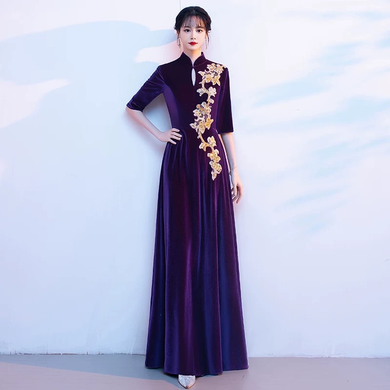 Gaun Cheongsam Modifikasi Gaya Tiongkok Baru Gaun Pesta Pernikahan Ibu dan Ibu mertua dengan Asam Asetat High-end Musim Panas Wanita Pakaian Bersulang