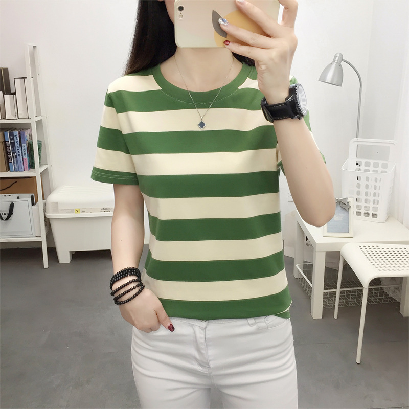 Kaus bergaris katun wanita lengan pendek pelangsing longgar musim panas 2023 Atasan wanita paruh baya kasual ukuran plus baru