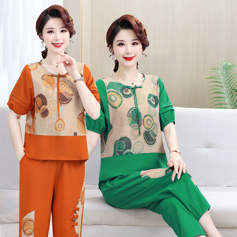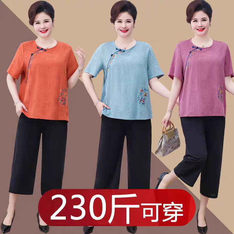 Setelan modis untuk wanita paruh baya dan lansia, setelan pakaian musim panas wanita paruh baya lengan pendek, modis kasual mengurangi usia, tipis ukuran plus