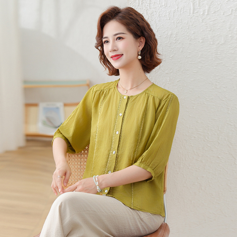Setelan Katun dan Linen Setelan Dua Potong Gaya Tiongkok Baru untuk Ibu Pakaian Musim Panas Wanita Setengah Baya dan Tua Model Baru 2025 Kemeja Gaya Barat Lengan Pendek