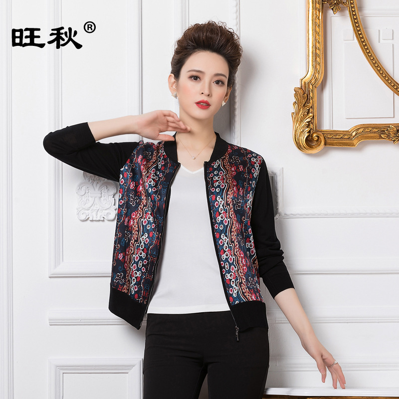 Pasokan langsung pabrik kaus ritsleting sutra murbei wanita paruh baya dan lansia 6546 kardigan rajut jahitan atasan sutra ibu