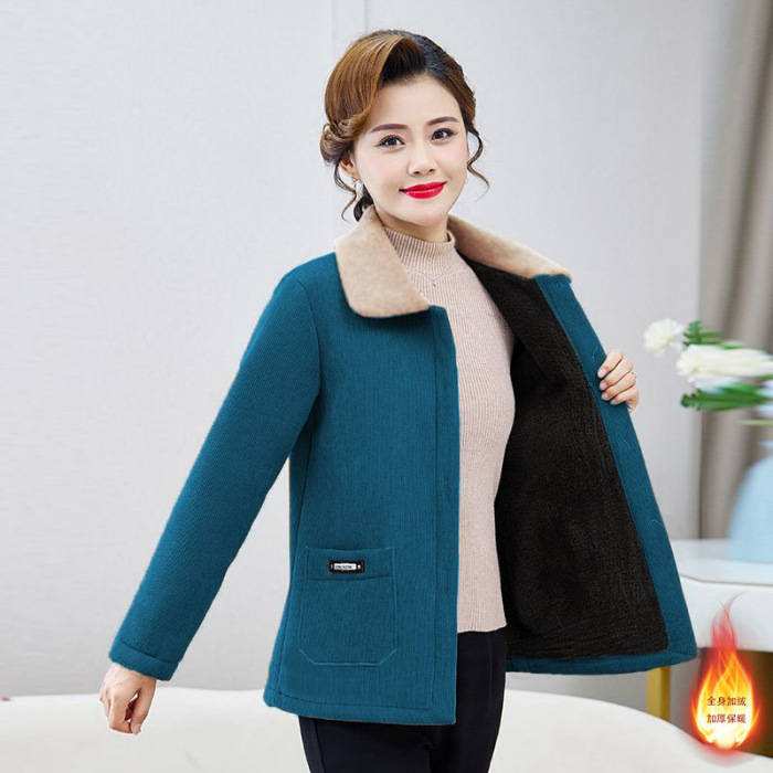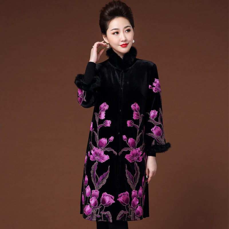 Mantel wol untuk wanita, mantel musim gugur dan musim dingin baru usia sedang dan lansia, mantel bulu tebal gaya Barat kerah cheongsam untuk orang tua