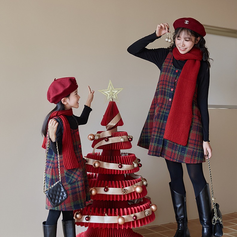 Gaun bersama orang tua anak, rok rompi wol bergaris bulu domba chunky festival festival ibu anak perempuan