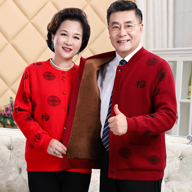 Sweater kardigan pria paruh baya dan lansia, mantel wol pria, jaket pasangan ibu dan ayah, Tang, tahun lahir, kakek dan nenek