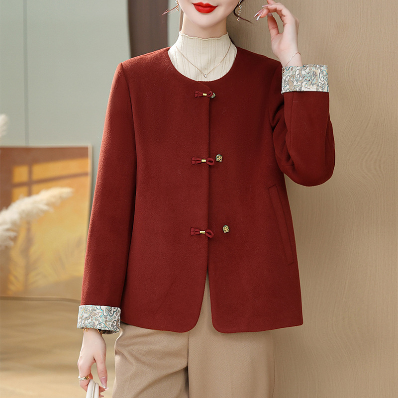 Mantel wol ibu kecil Tiongkok, pakaian musim semi dan musim gugur untuk wanita paruh baya dan lansia