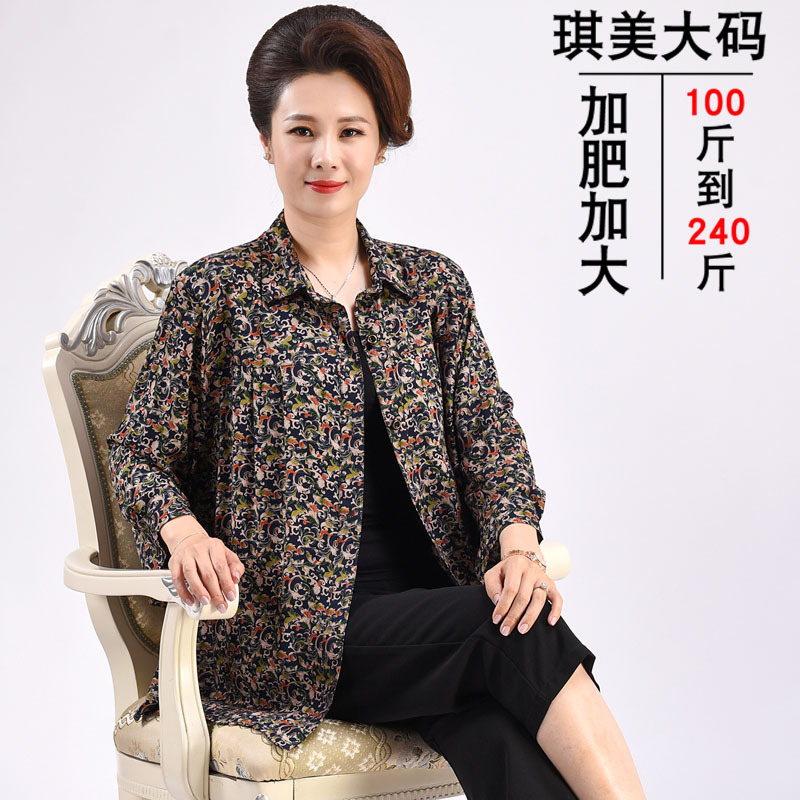 Pakaian wanita paruh baya dan lansia, pakaian wanita paruh baya ukuran besar 200kg pakaian ibu gemuk musim semi, musim gugur dan musim dingin lengan tanggung pakaian nenek longgar