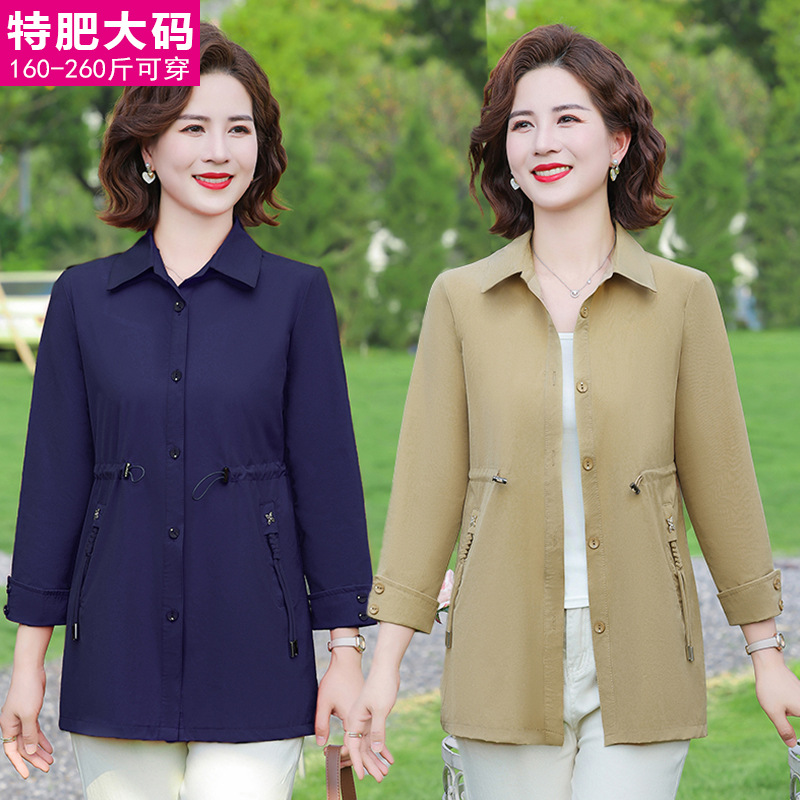 Ibu kasual mantel tipis, 40 tahun 50 wanita usia sedang gaya Barat ukuran plus musim semi dan musim gugur mantel trench panjang setengah