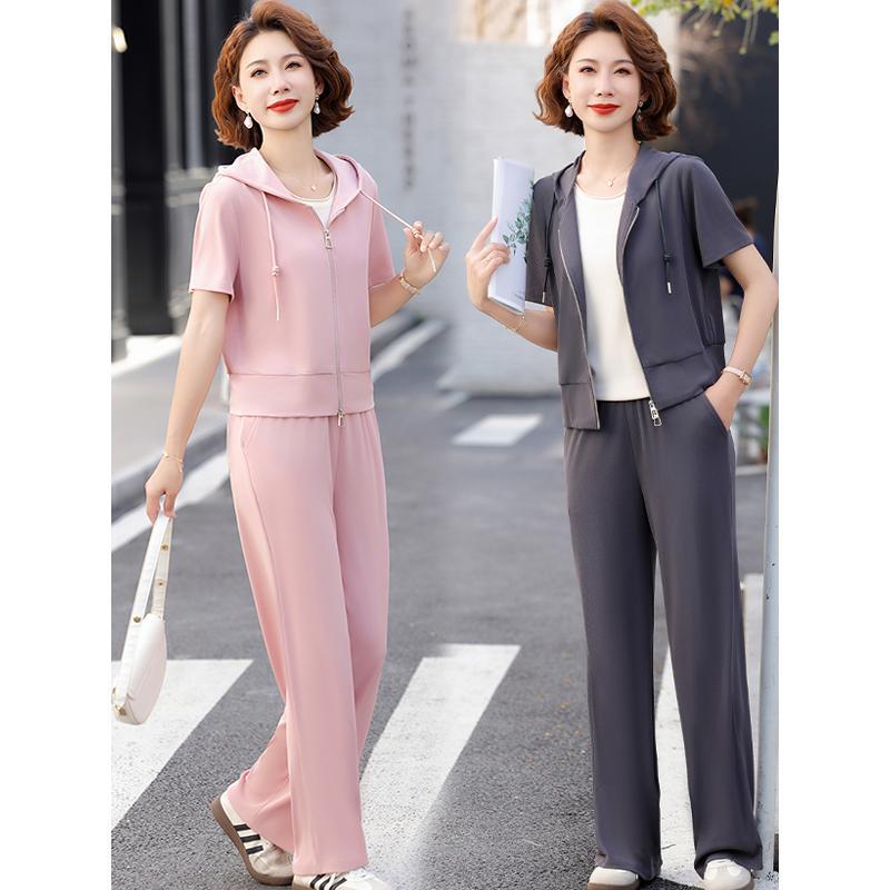 Setelan Kasual Musim Semi dan Musim Panas Ibu Model Baru 2025 Pakaian Musim Panas Wanita Setengah Baya dan Tua 50 Tahun Pakaian Olahraga Setelan Dua Potong Ukuran Besar Gaya Barat