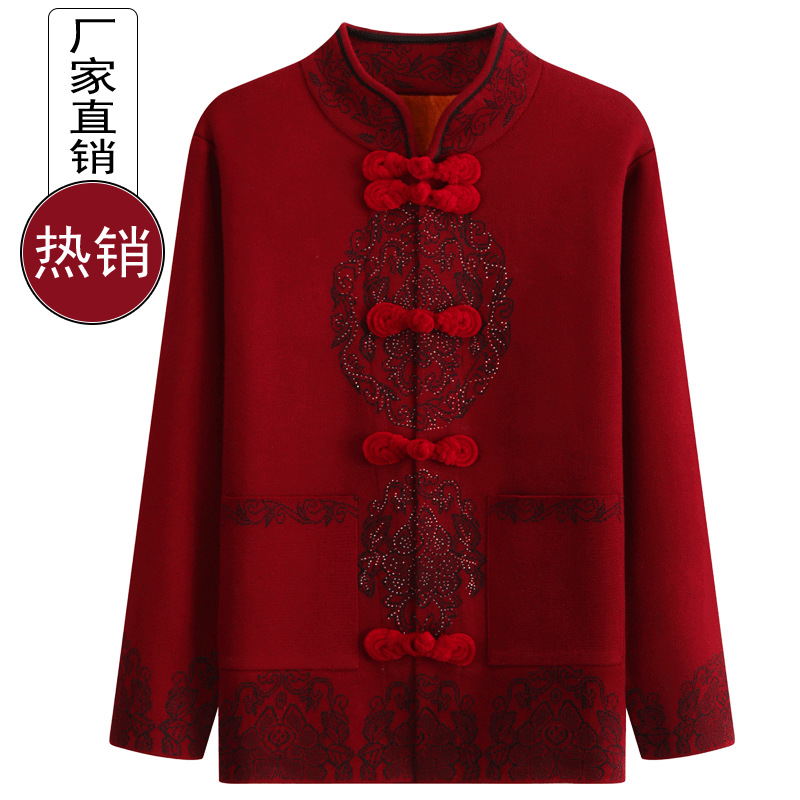 Pakaian ibu lengan panjang, pakaian ibu musim semi dan musim gugur mantel longgar usia sedang dan orang tua, setelan Tang kardigan rajut ukuran plus 2021baru