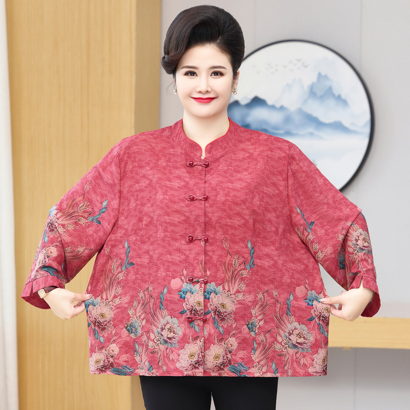 Pakaian Musim Panas Ibu Setengah Baya Kemeja Lengan Pendek Wanita Gaya China Atasan Kaus Kecil Gaya Barat Modis Kardigan Longgar Ukuran Besar
