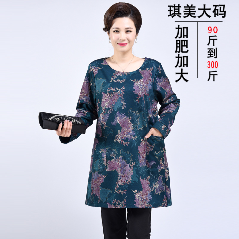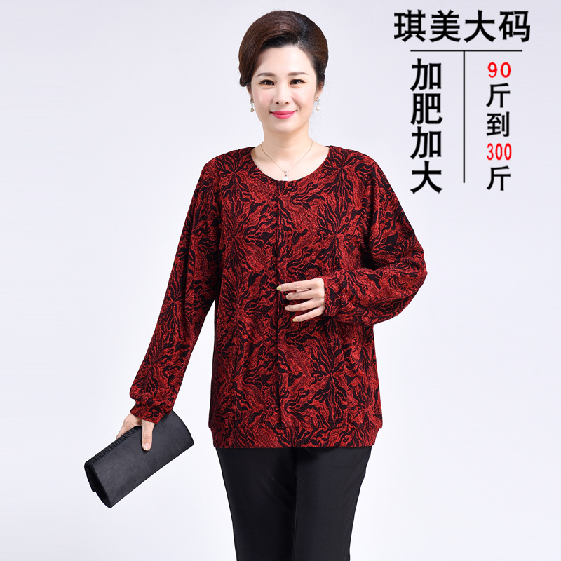 Kaus wanita setengah baya dan lansia, pakaian wanita ukuran besar gaya baru musim semi, musim gugur dan musim dingin
