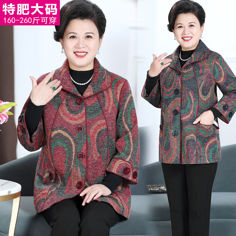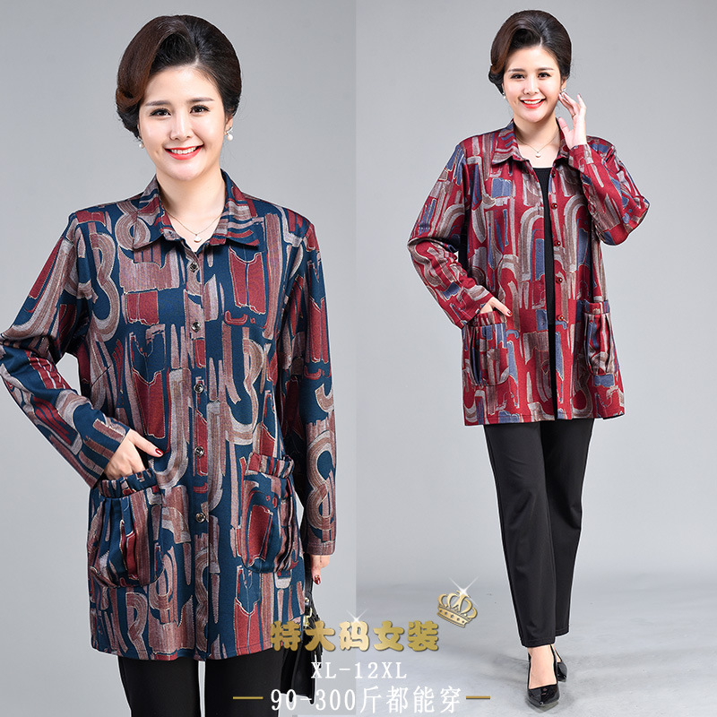 Pakaian wanita paruh baya dan lansia, pakaian Atasan wanita ukuran plus, mantel lemak gaya Barat mode baru musim semi dan musim gugur 200kg