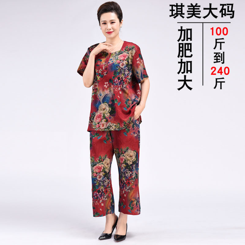 Pakaian tubuh khusus ibu modis musim panas, ukuran besar lengan pendek setelan usia sedang dan orang tua setelan dua potong pakaian wanita