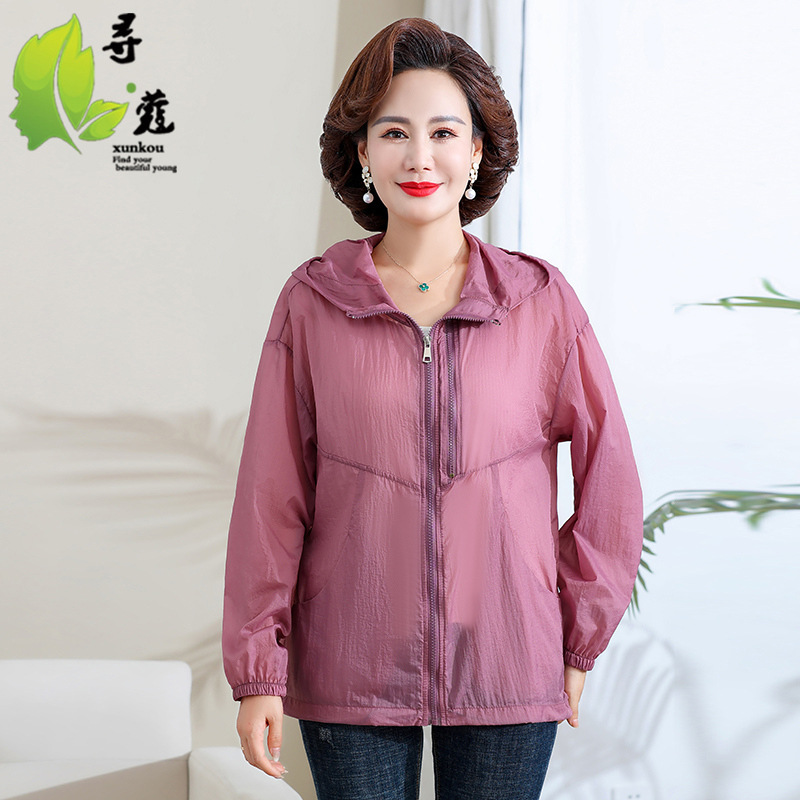 Xunyou Pakaian Pelindung Terik Matahari Ibu Pakaian Wanita Setengah Baya 50 Tahun Pakaian Musim Panas Produk Baru Pakaian Pelindung Terik Matahari Jaket Wanita Kardigan Luar Ruangan