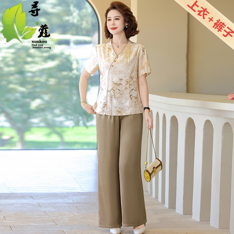Setelan Musim Panas Ibu Modis Pakaian Olahraga Wanita Gaya Barat Setelan Dua Potong Lengan Pendek Wanita Paruh Baya Pakaian Ibu mertua Gaya Barat Pakaian Musim Panas Wanita