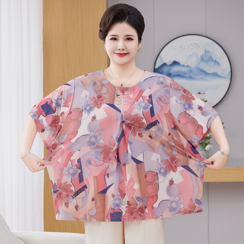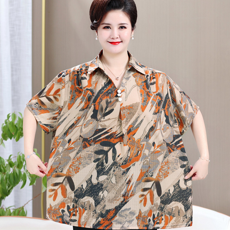 Kaus musim panas ibu dan lansia, kemeja model Barat lengan pendek, 60 nenek, ukuran plus 50 tahun, Kaus musim panas ibu anak perempuan