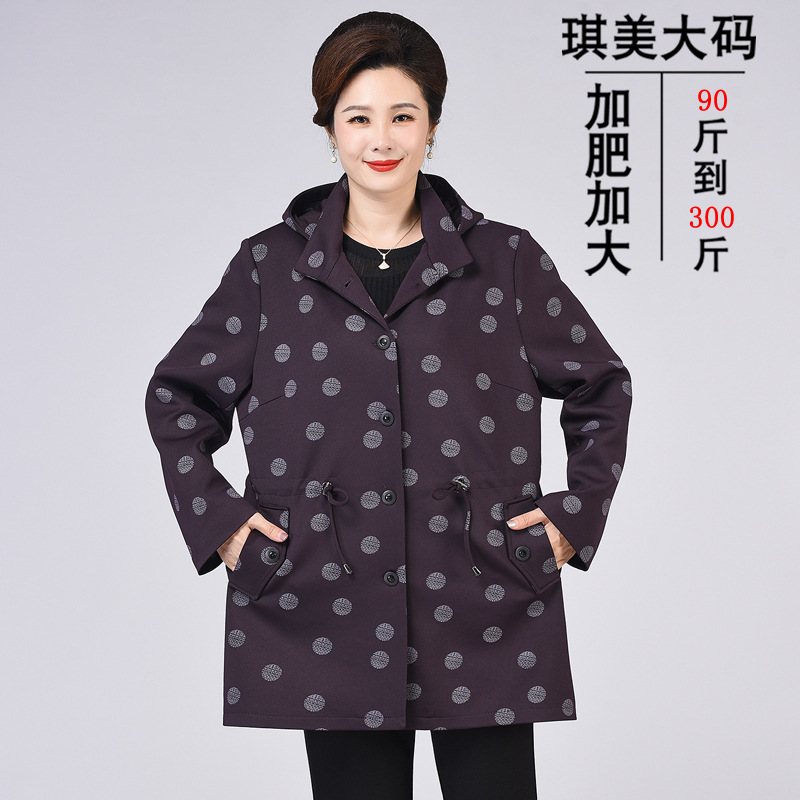 Kardigan bertudung ukuran besar ibu lemak, pakaian musim semi dan musim gugur gaya Barat baru usia sedang dan orang tua 200kg
