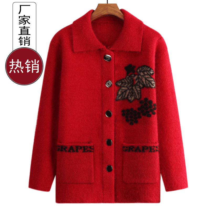 Nenek memakai Wanita sweater mantel setengah baya dan orang tua musim semi dan musim gugur wanita tua longgar pakaian musim semi ibu sweater cardigan