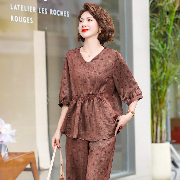 Pakaian Wanita Model Baru Set Lengan Pendek Ibu Setengah Baya Model Tipis Musim Panas Dua Potong Pakaian Kasual Wanita Paruh Baya Usia 50 Tahun