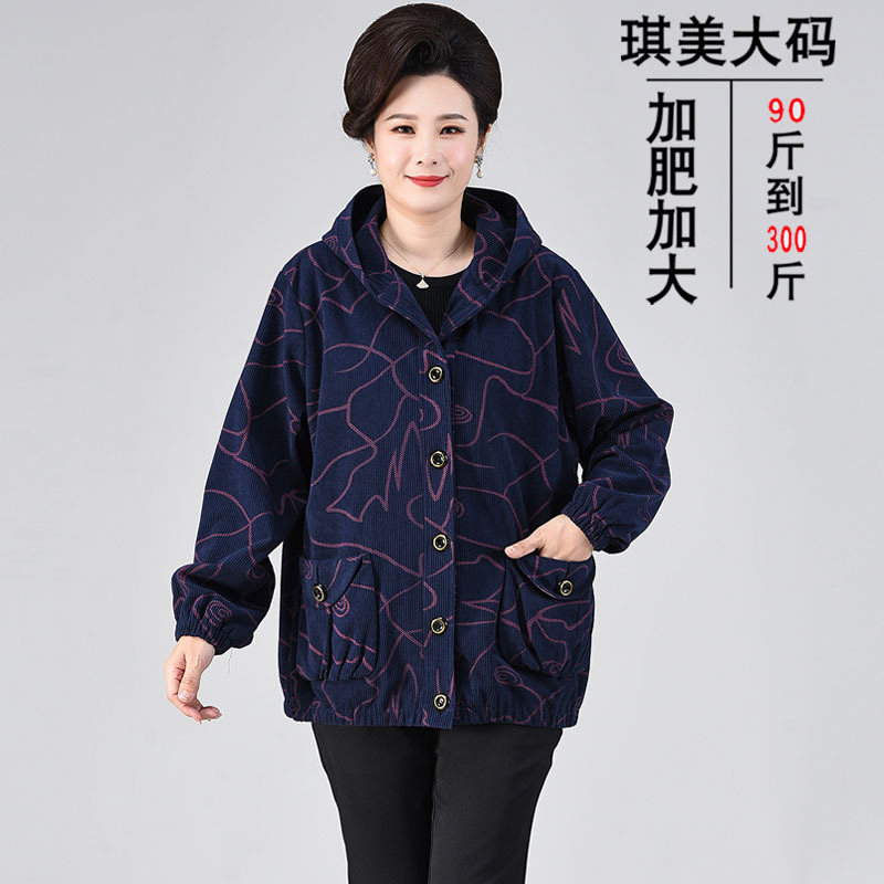 Jaket Musim Semi dan Musim Gugur Pakaian Wanita Setengah Baya/Lansia Berukuran 200Kg Jaket Wanita Gemuk