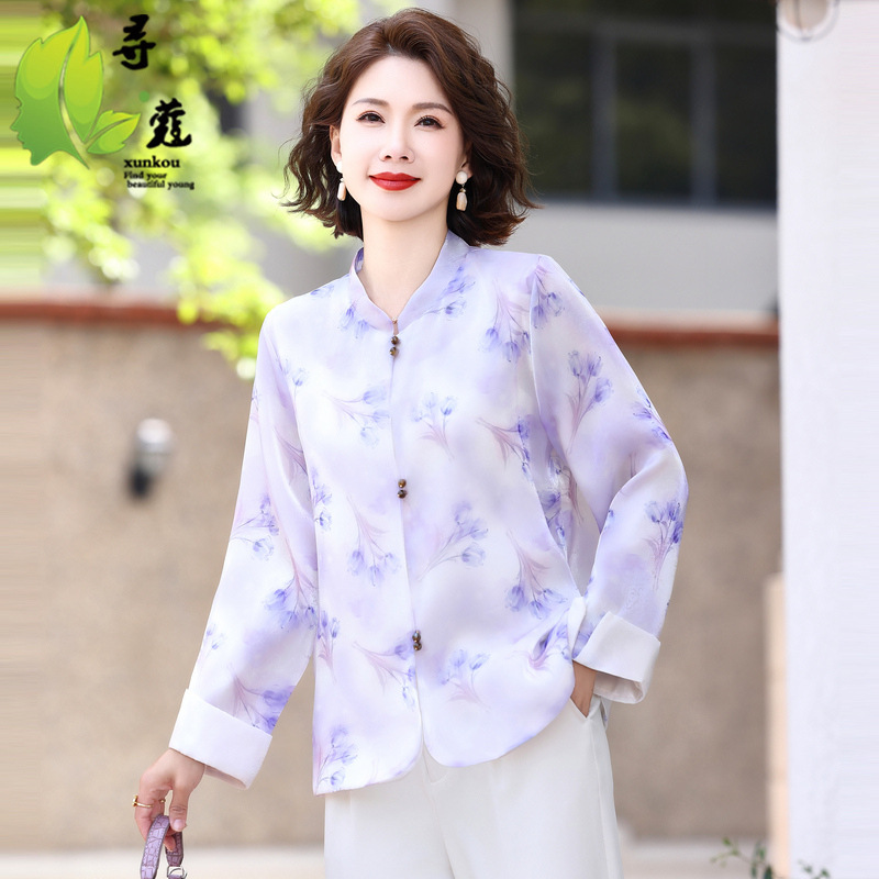 Pakaian wanita paruh baya dan lansia, kemeja lengan panjang ibu musim semi musim gugur dan Gugur 2021