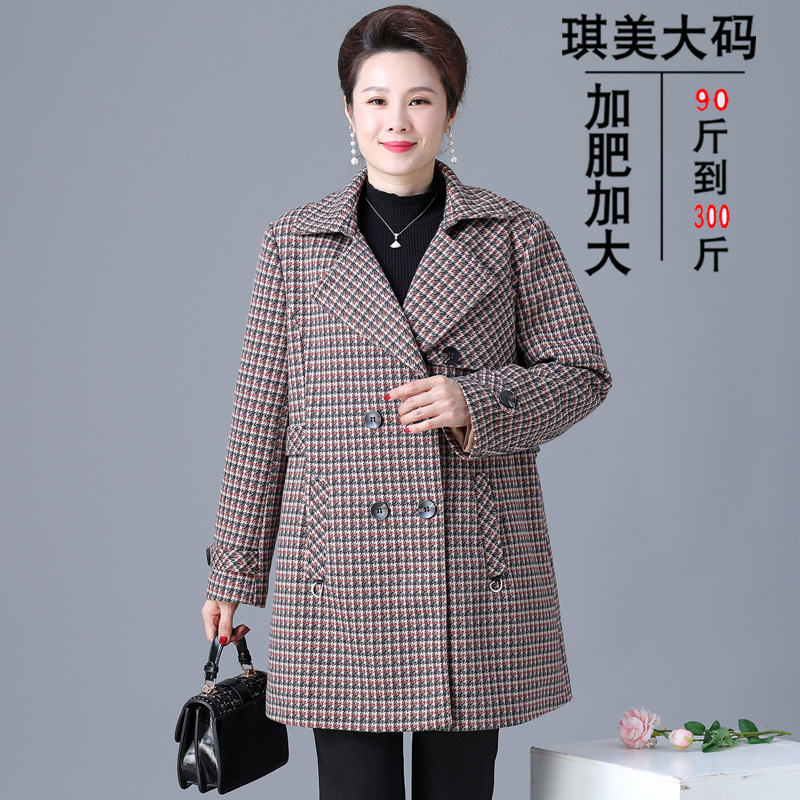 Mantel musim semi dan musim gugur wanita, atasan panjang setengah panjang baru usia sedang gaya Barat ukuran besar paruh baya dan lansia 2023