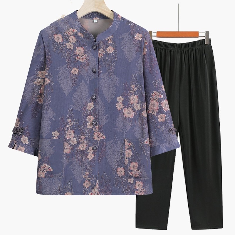 Pakaian Wanita Setengah Baya dan Wanita Usia Lanjut Setelan Pakaian Musim Panas Nenek Setelan Dua Potong untuk Ibu Lansia Atasan Wanita Tua Lengan Pendek