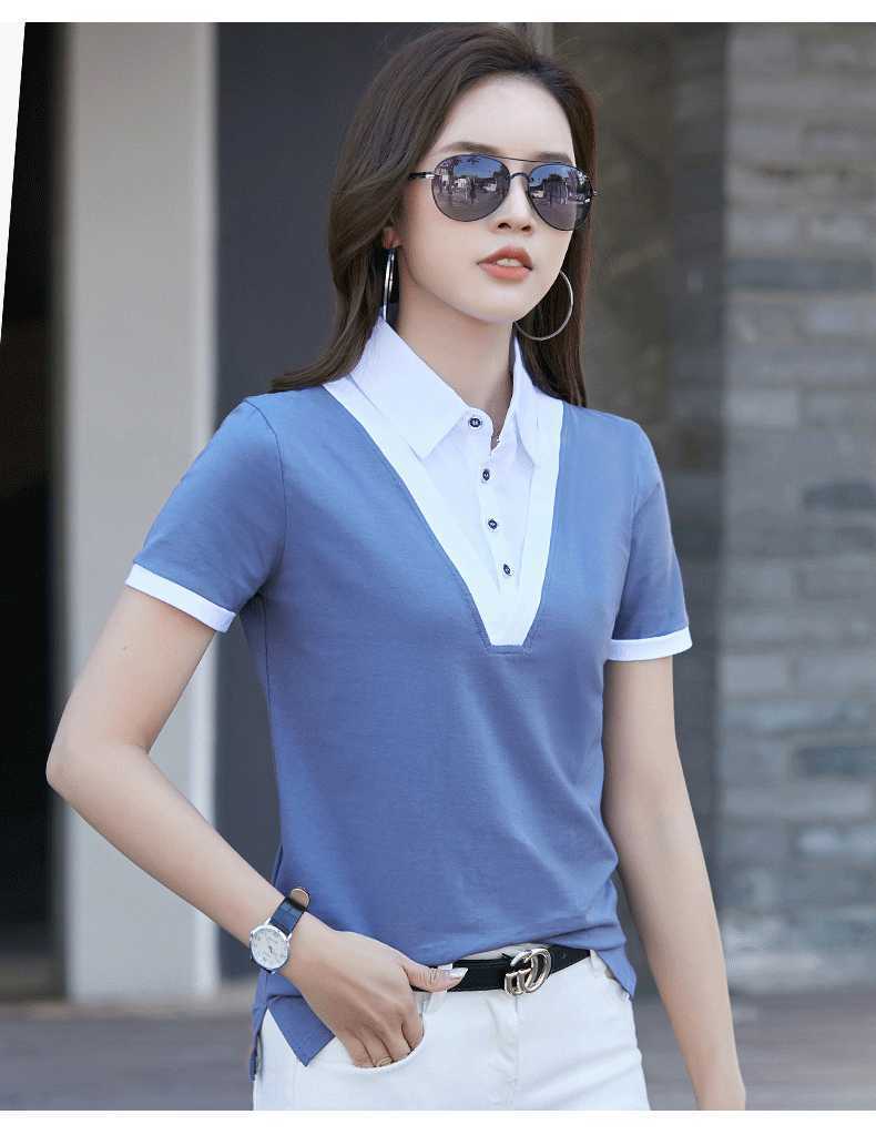 Kemeja Bottoming Dua Potong Palsu 2025, Atasan Lengan Pendek Kerah Polo Ibu Usia Menengah Feminin, T-shirt Wanita 303
