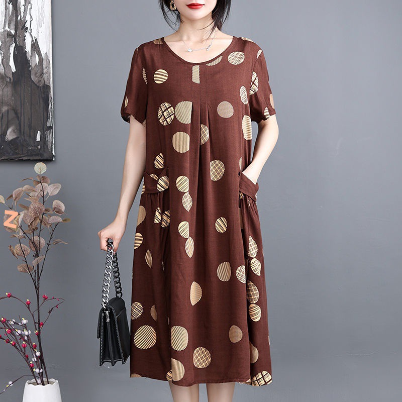 Gaun sifon ibu paruh baya, pakaian wanita paruh baya dan lansia, gaun gaya Barat longgar ukuran plus Musim Panas 2022
