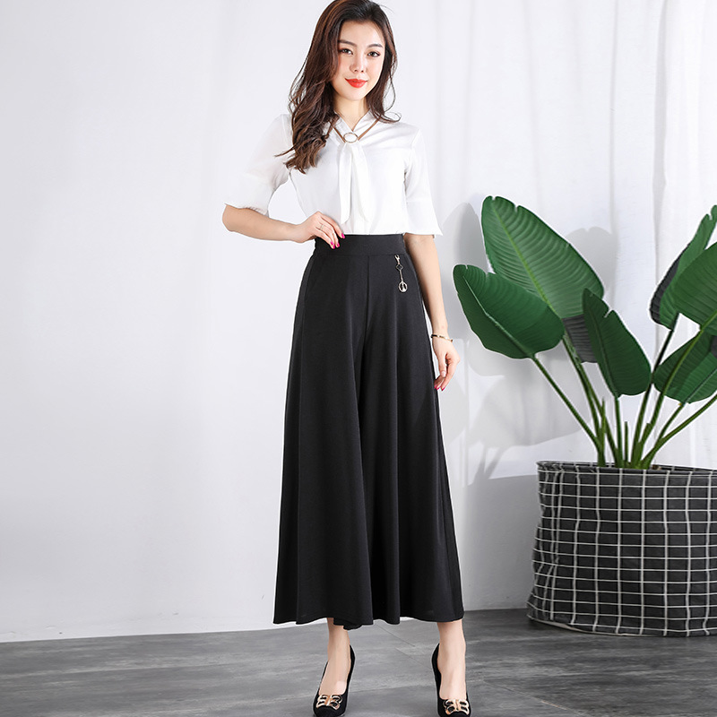 Celana kulot ibu untuk wanita, celana kulot usia sedang dan lansia pinggang tinggi kaki lebar longgar ukuran besar, celana crop tari persegi baru Musim Panas 2024