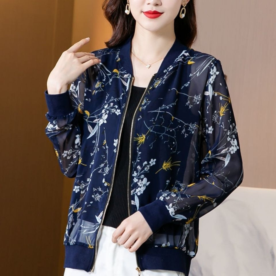Pakaian Ibu Pakaian Bisbol Bersablon Model Baru Musim Panas Pakaian Wanita Atasan Longgar Model Baru Lengan Panjang Pakaian Pelindung Terik Matahari Jaket Pendek Model Tipis