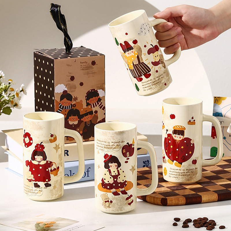 Gelas Lurus Waktu orangtua-anak Gelas Air Lucu Gelas Keramik Musim Semi Hadiah Hadiah Hadiah Mug Nilai Tinggi
