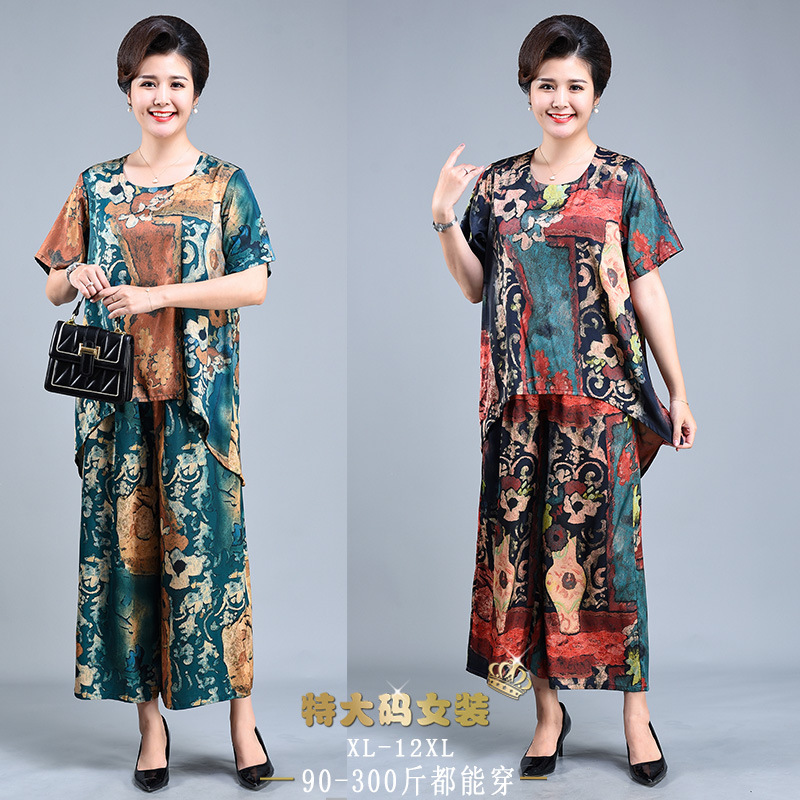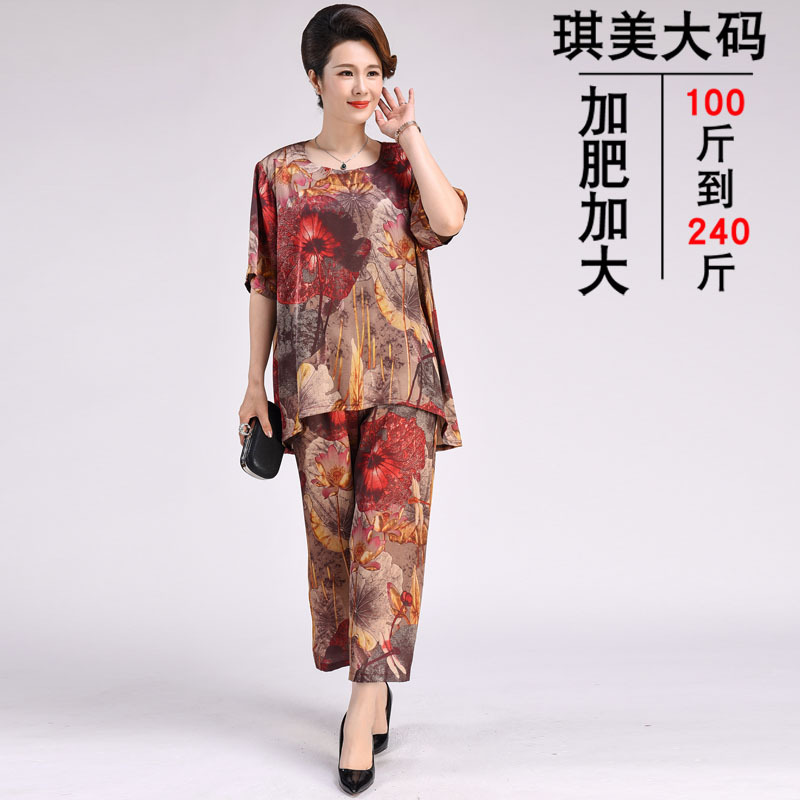 Setelan Wanita Paruh Baya Lengan Pendek Musim Panas Ibu Pakaian Wanita Ukuran Besar Mengurangi Usia Gaya Barat Model Baru Musim Panas Setelan Dua Potong Longgar Menutupi Perut