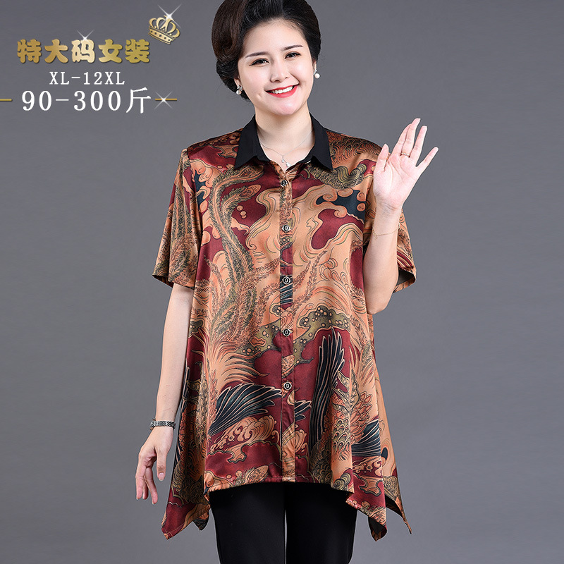 Pengiriman gratis-11 ukuran-musim panas baru kemeja lengan pendek paruh baya dan lansia baru pakaian ibu ukuran plus longgar