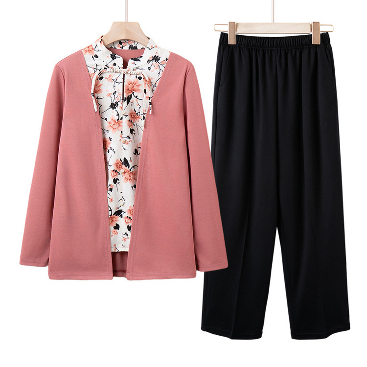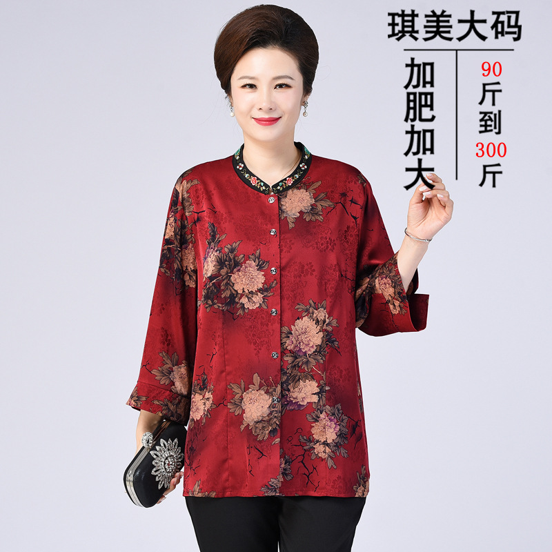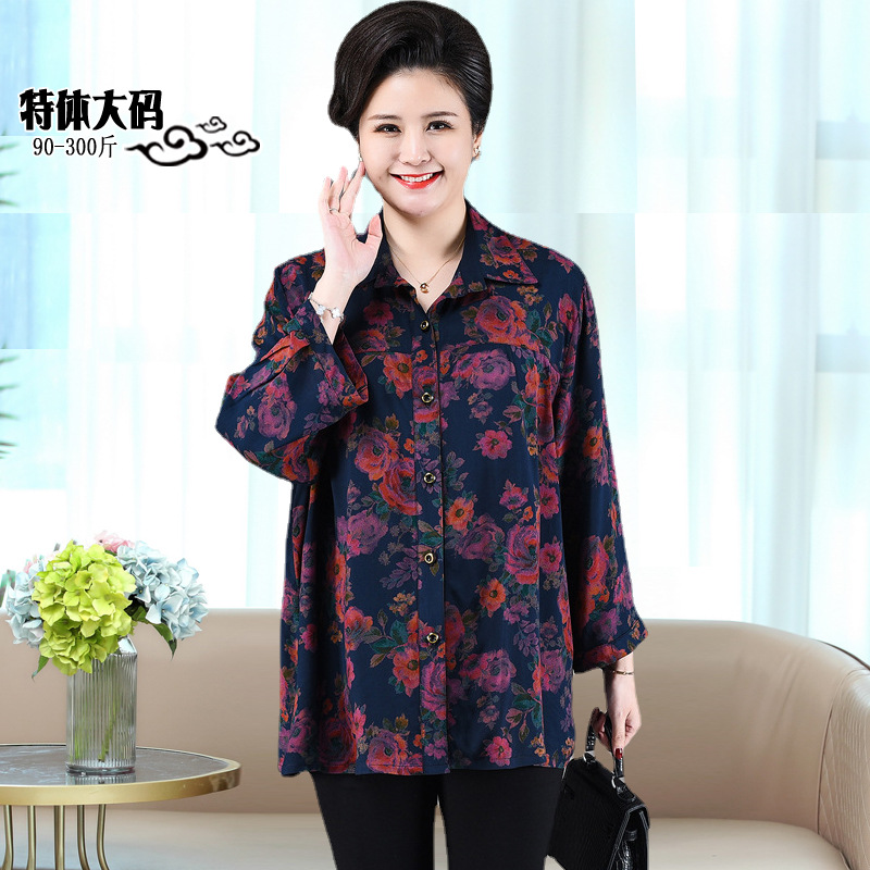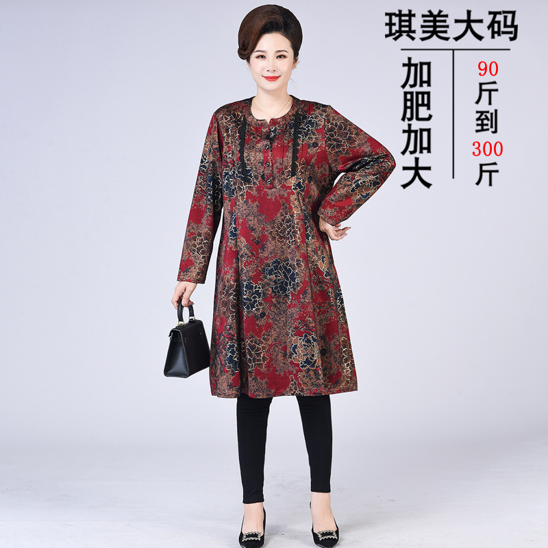 Pakaian wanita paruh baya dan lansia, pakaian wanita paruh baya ukuran besar 200kg pakaian ibu gemuk musim semi, musim gugur dan musim dingin lengan tanggung pakaian nenek longgar