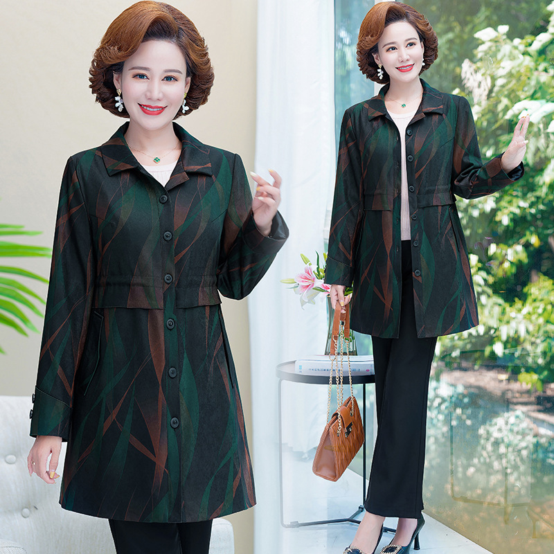 Mantel musim semi dan musim gugur wanita, atasan panjang setengah panjang baru usia sedang gaya Barat ukuran besar paruh baya dan lansia 2023
