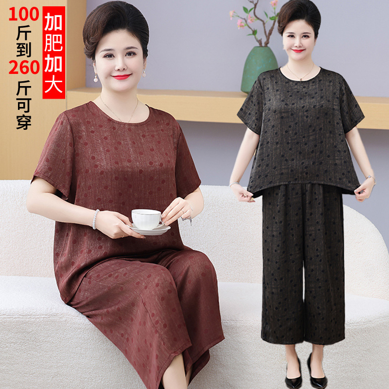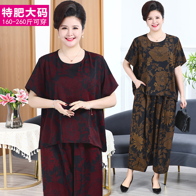 Pakaian ibu paruh baya dan lansia, celana setelan pakaian Ibu ukuran plus nyaman longgar lengan pendek mode baru musim panas