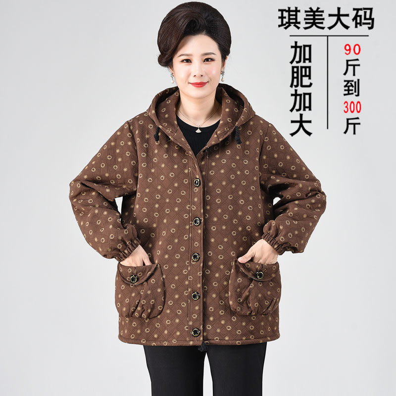 Jin 200, mantel berlapis katun untuk ibu gemuk, mantel musim semi 2023, ukuran plus usia sedang dan tua, mantel empuk katun untuk wanita musim semi dan musim gugur