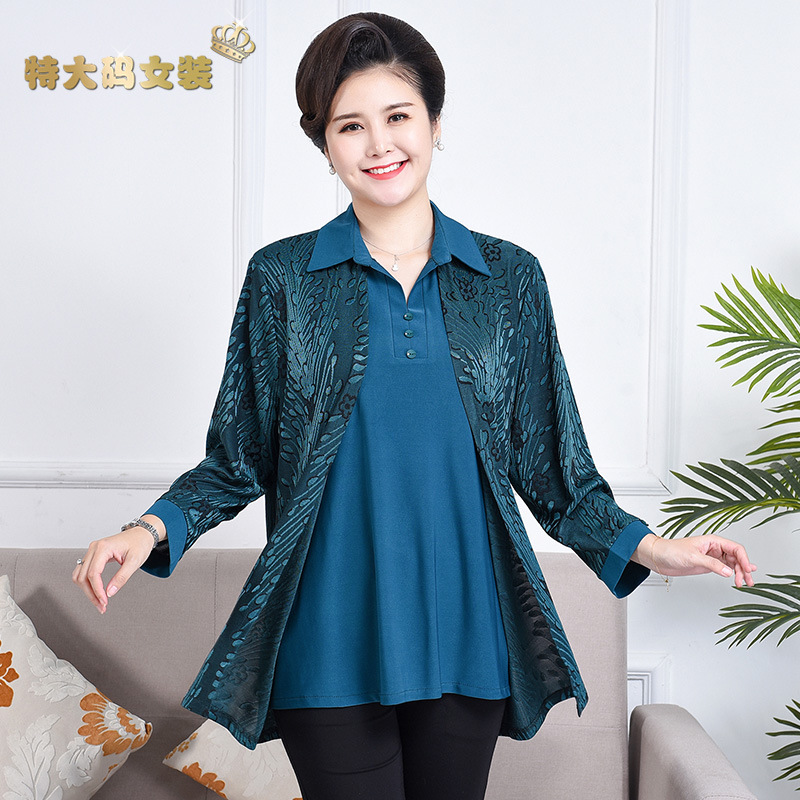 Mantel musim gugur wanita paruh baya, pakaian atasan gaya Barat usia sedang dan orang tua ukuran besar musim semi dan musim gugur