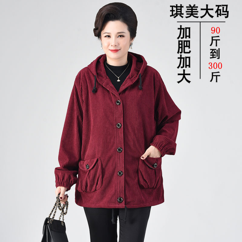 200kg pakaian ibu musim semi dan musim gugur mantel korduroi ukuran plus pakaian wanita paruh baya dan lansia jaket longgar nenek wanita gendut