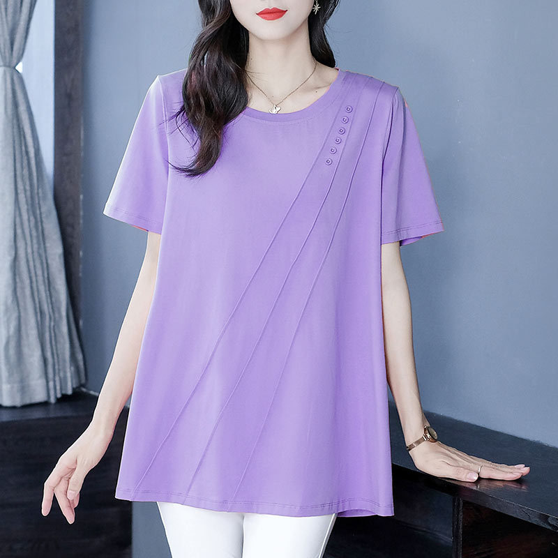 Setelan wanita paruh baya dan lansia, kemeja lurus musim panas ukuran plus ibu