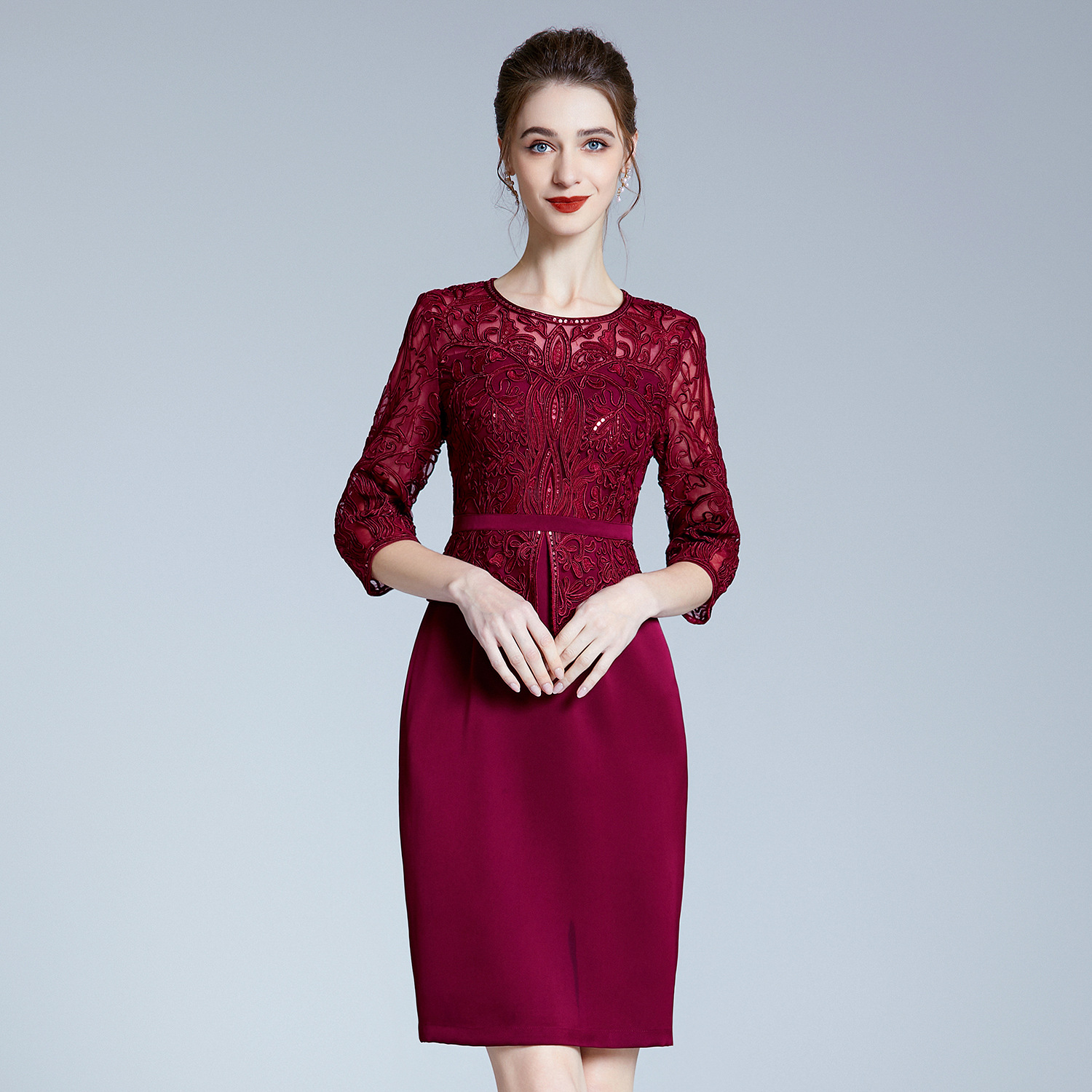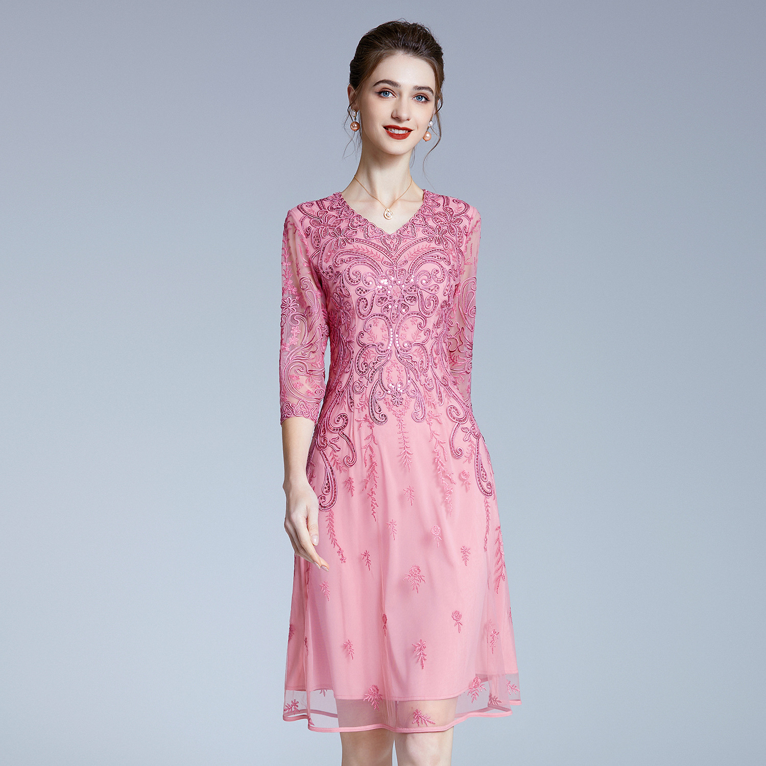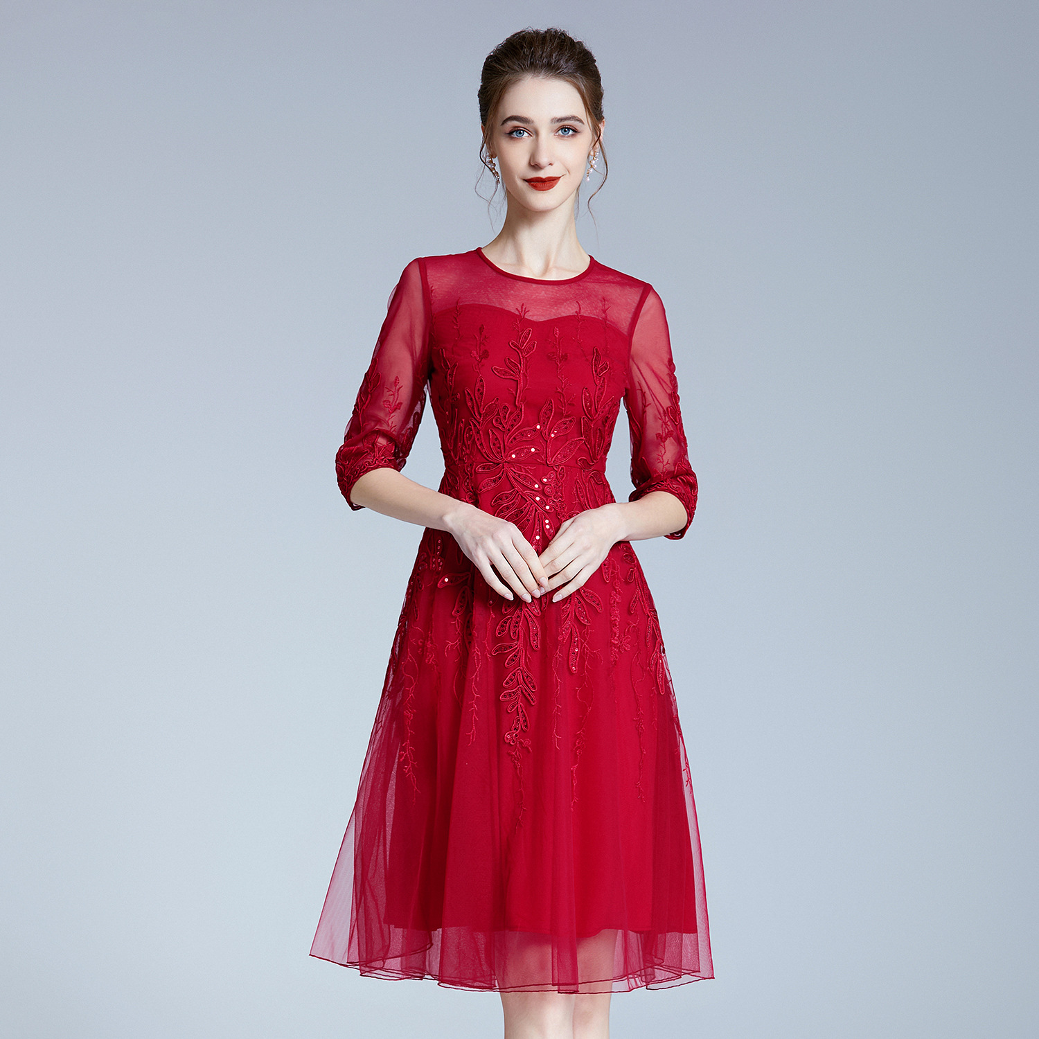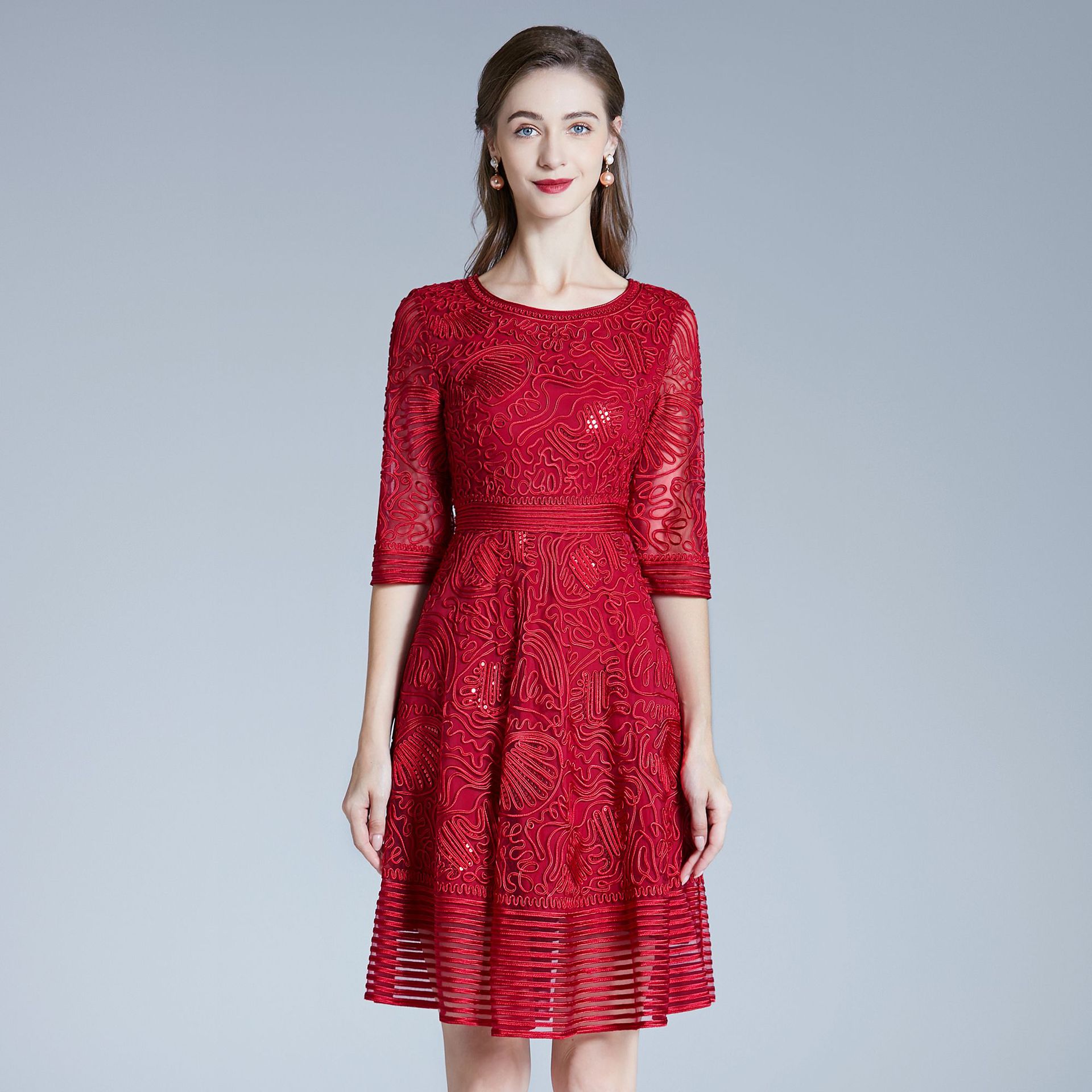 Gaun setengah baya, Musim Semi kelas atas merek pernikahan perjamuan gaun bordir ibu senang mertua gaun ibu muda pengiriman satu potong