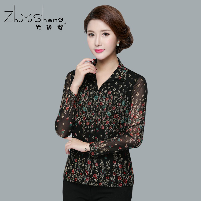 Suara bambu 2024 pakaian musim semi dan musim panas baru kemeja jala Taiwan kerah usia sedang dan orang tua 50 tahun pakaian ibu kemeja kecil modis