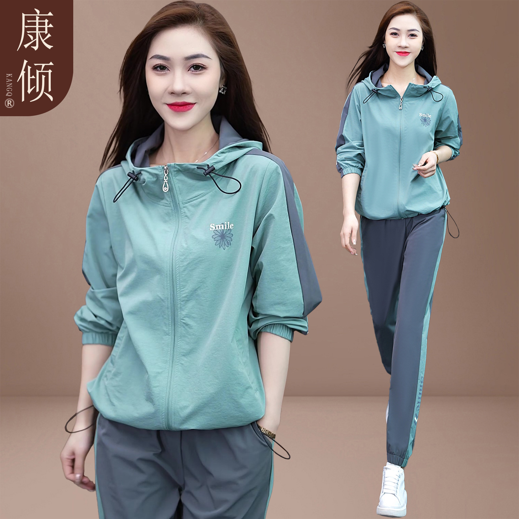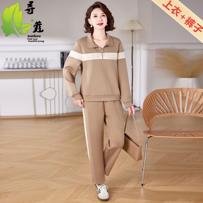 Setelan pakaian olahraga ibu muda 2024, pakaian lari awal musim semi dan musim gugur wanita paruh baya dan orang tua set dua potong