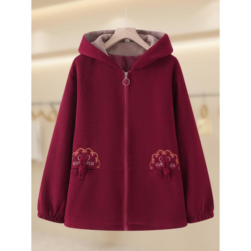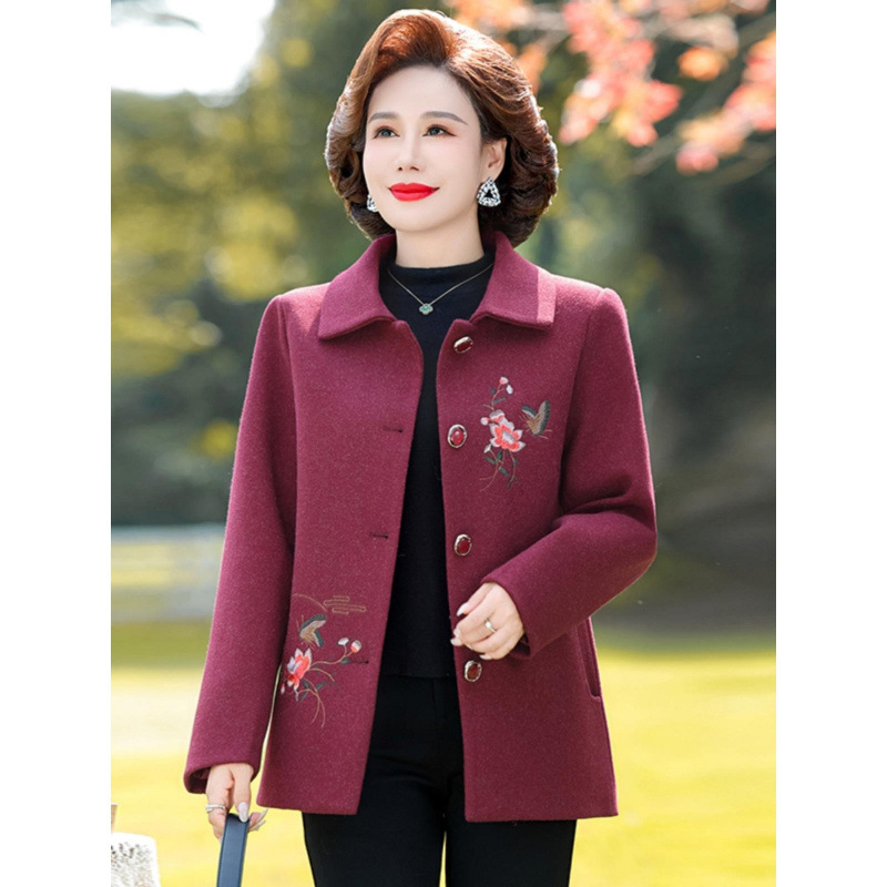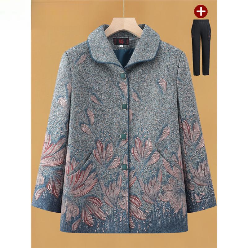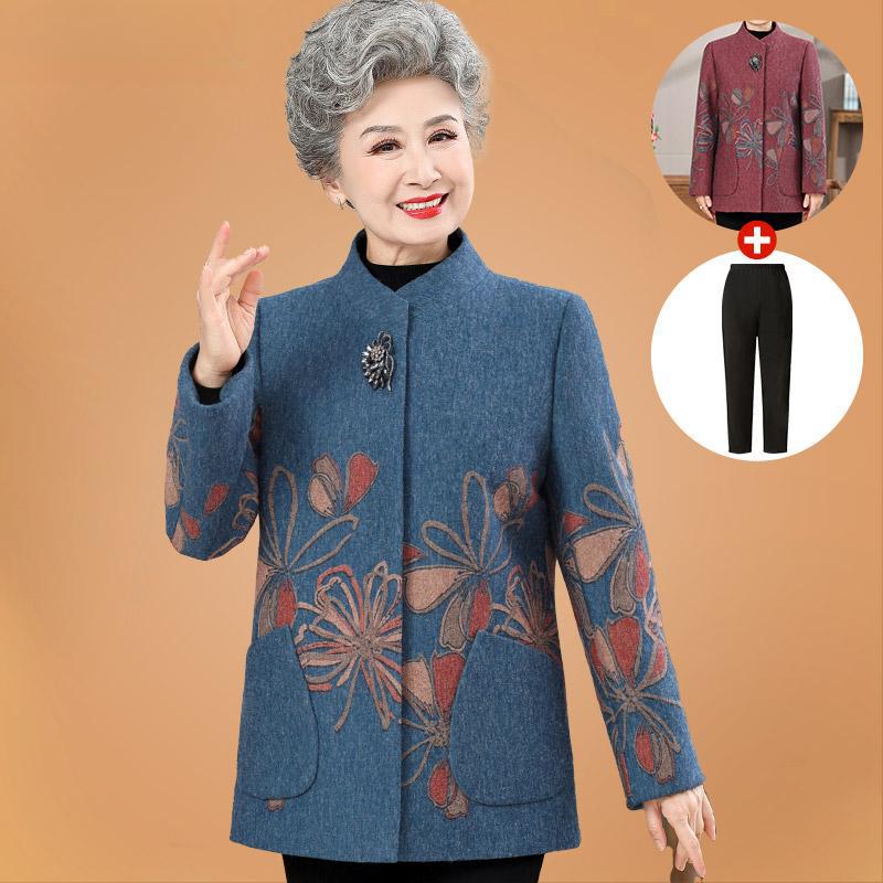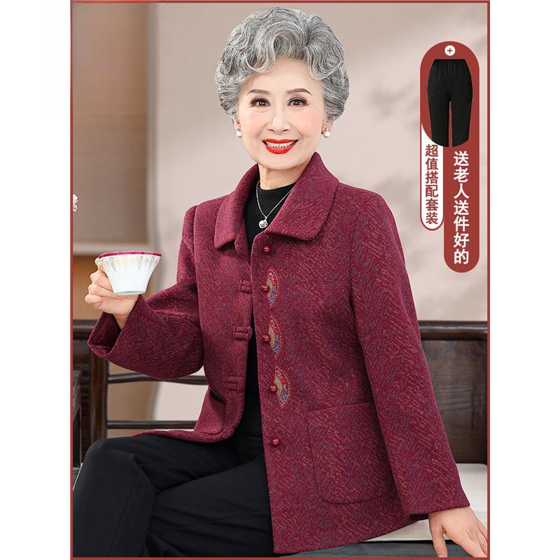 Baju Mantel Musim Semi Musim Gugur Nenek Baju Atasan 60 Tahun 70 Istri 80 Musim Dingin Setengah Baya dan Lansia Baju Musim Semi Ibu Lengan Panjang Wanita