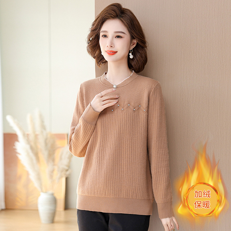 Sweter hangat beludru satu potong untuk wanita paruh baya dan lansia, kemeja dasar gaya Barat tebal berlapis bulu domba untuk ibu musim dingin 2023